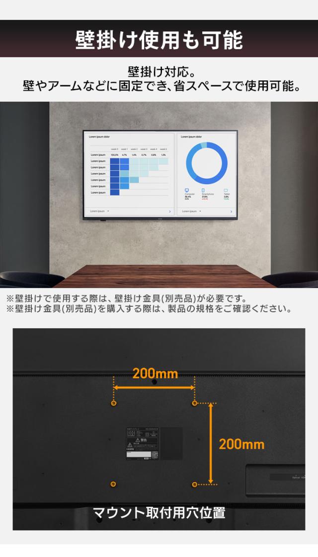 (※壁掛けで使用する場合、別売の壁掛け金具が必要です。壁掛け金具を購入の際は製品規格をご確認ください。)