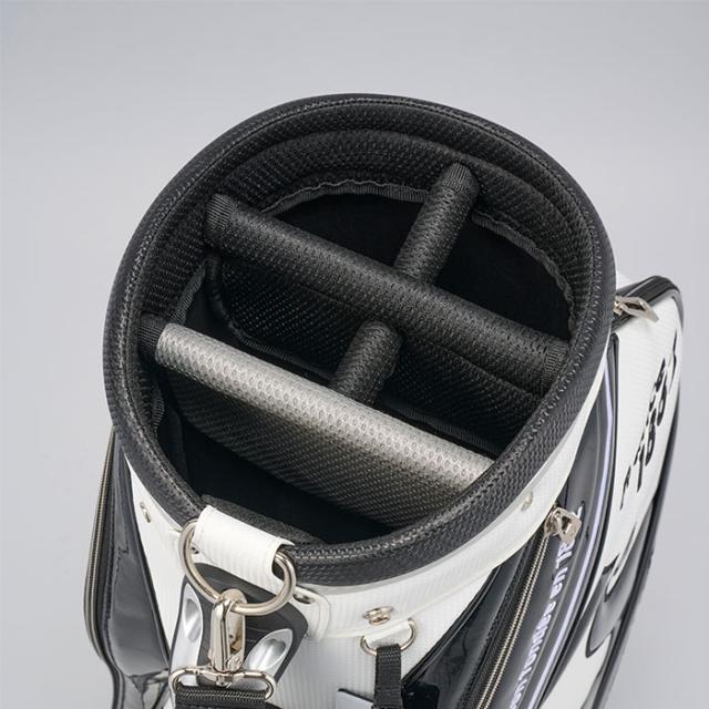 ニワトリのビッグロゴを大胆にデザインした9.0型のキャディバッグ