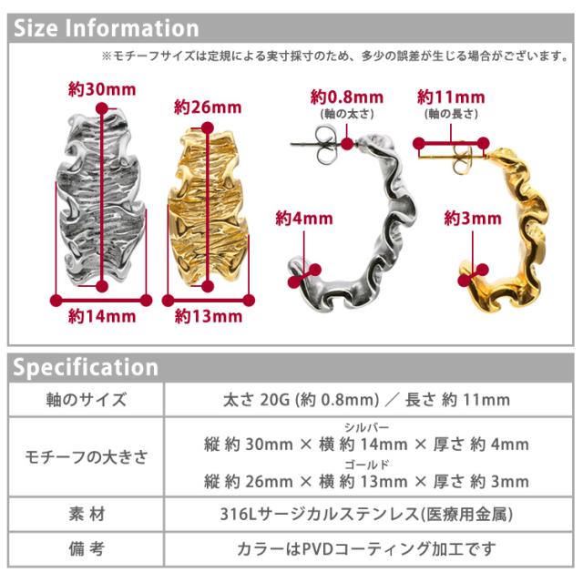 金属アレルギー対応 ステンレスピアス ギャザーデザインハーフフープピアス セカンドピアス スタッドピアス 両耳用