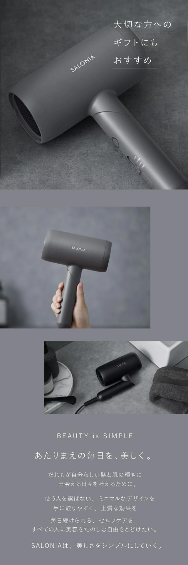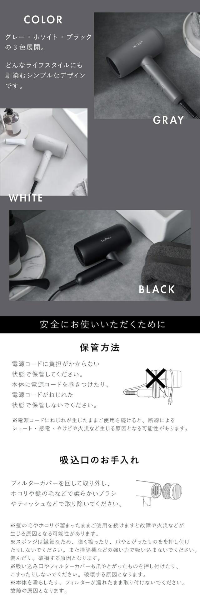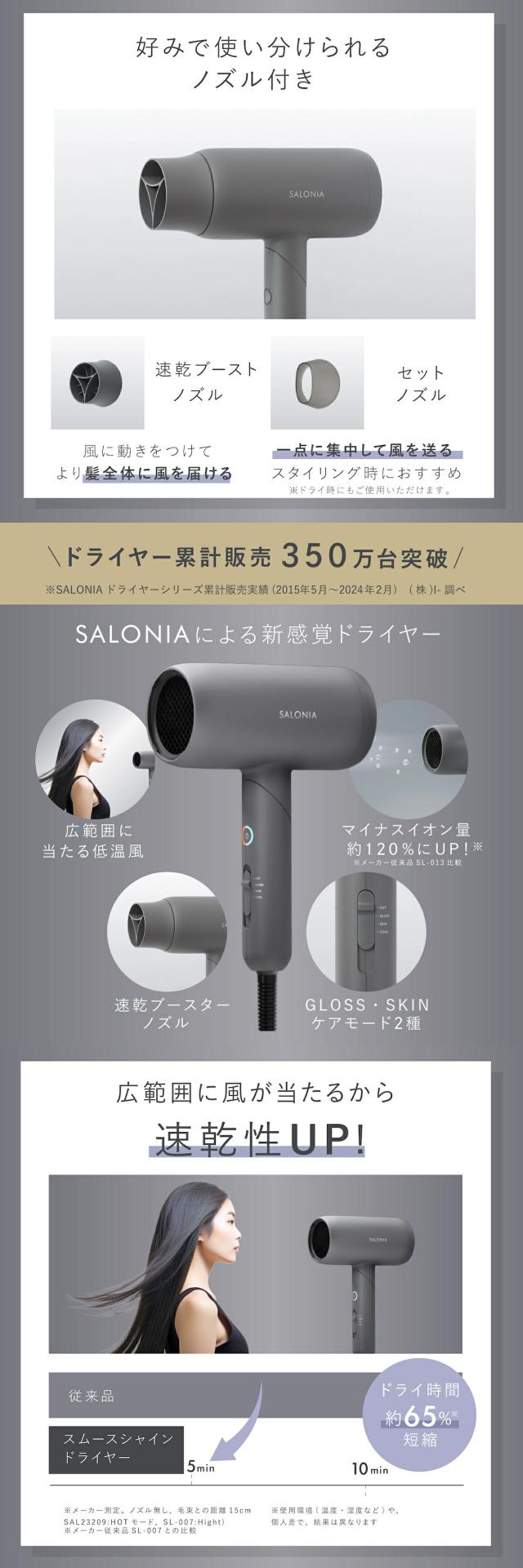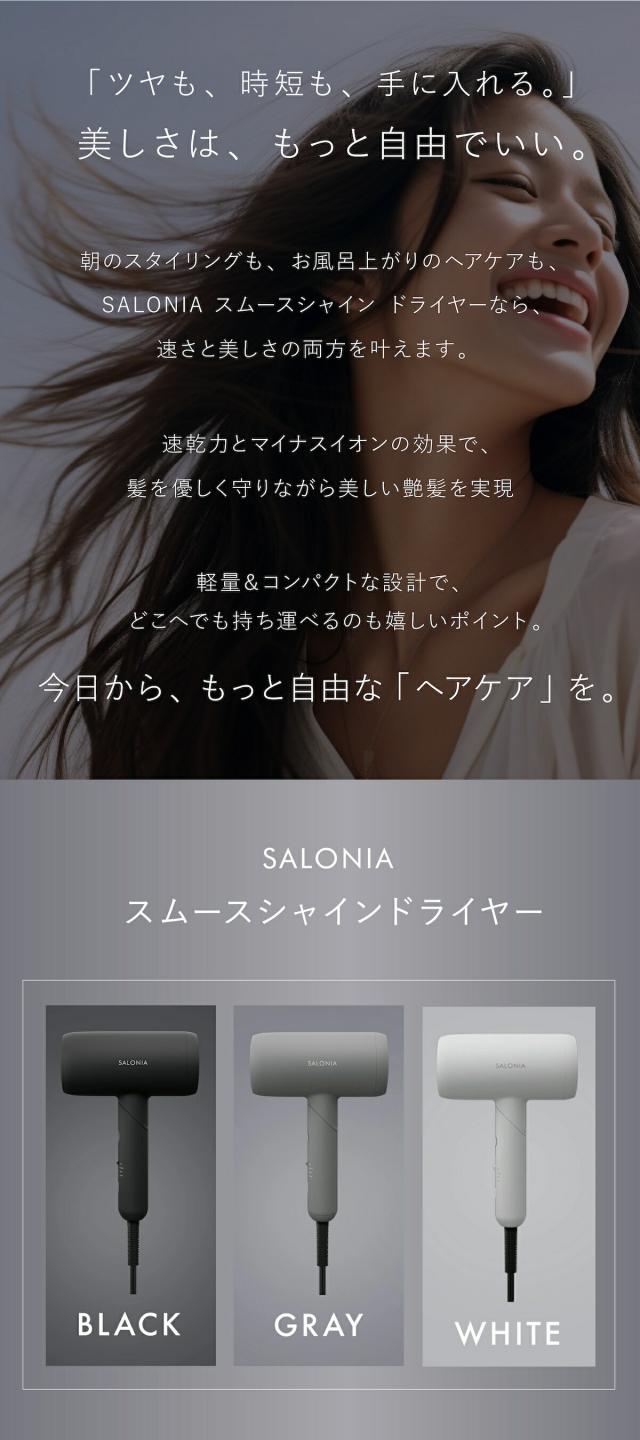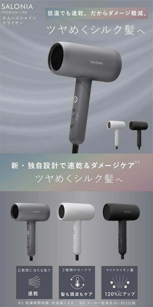 サロニア ドライヤー スムースシャイン プレミアム ブラック ホワイト グレー 大風量 マイナスイオン 速乾 ヘアドライヤー 軽い 時短 salonia SALONIA ダメージケア スタイリング 男性 女性 プレゼント