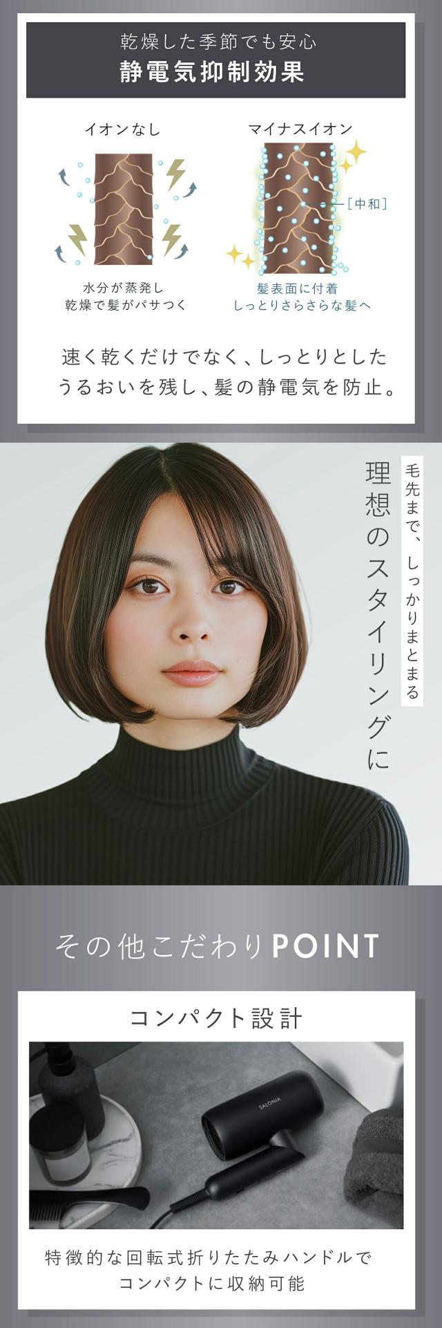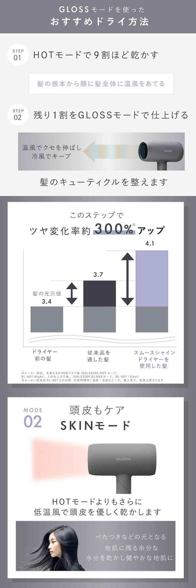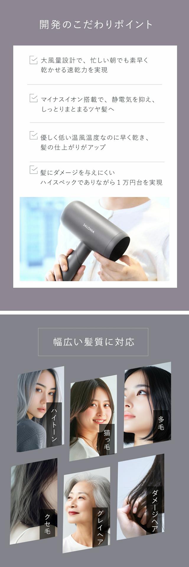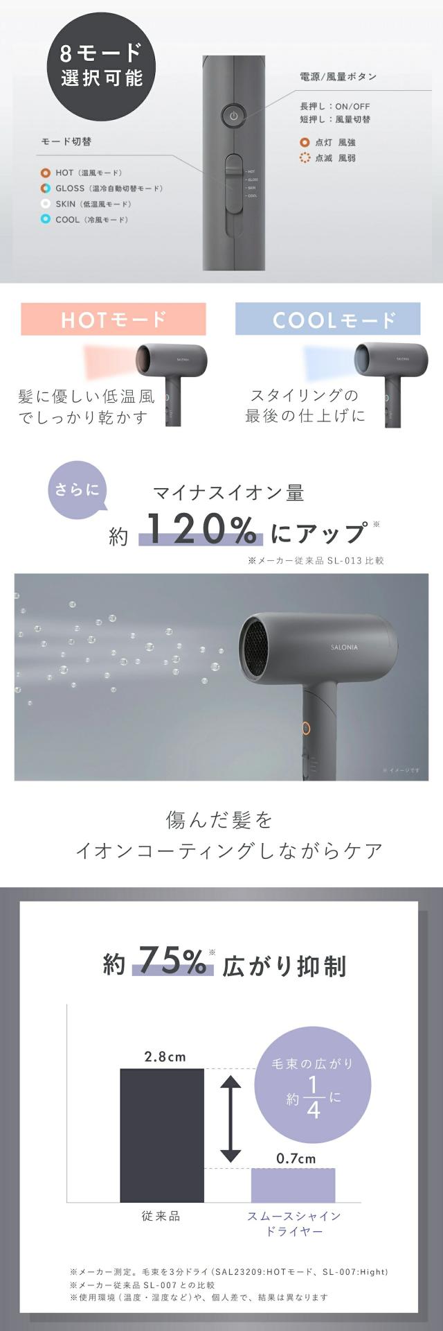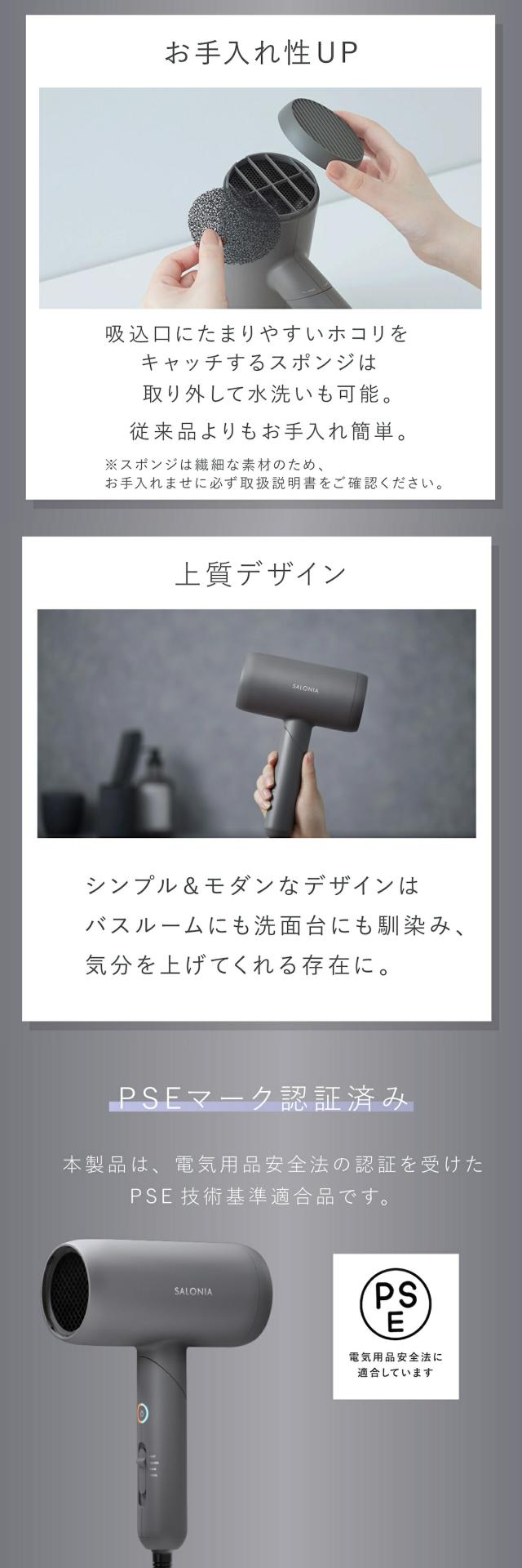サロニア ドライヤー スムースシャイン プレミアム ブラック ホワイト グレー 大風量 マイナスイオン 速乾 ヘアドライヤー 軽い 時短 salonia SALONIA ダメージケア スタイリング 男性 女性 プレゼント
