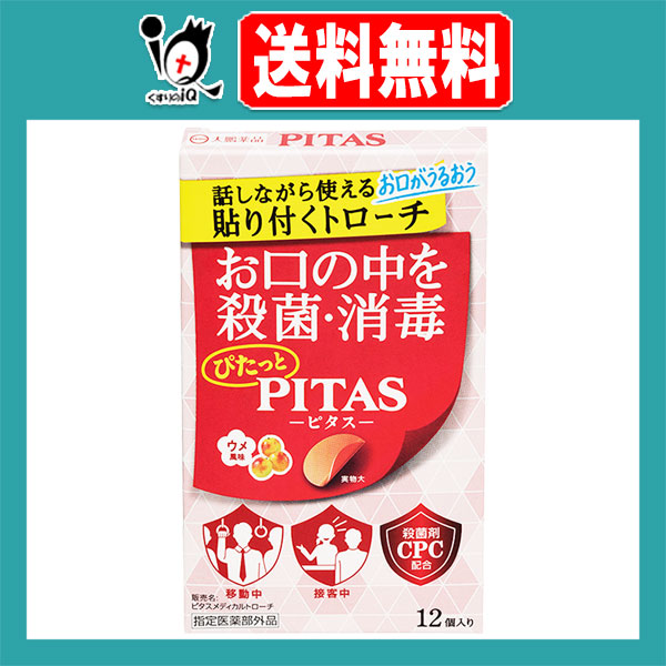 【指定医薬部外品】ピタスメディカルトローチ ウメ風味 12枚入【大鵬薬品工業】話しながら使えるお口がうるおう貼り付くトローチ PITAS-ピタス- お口の中を殺菌・消毒