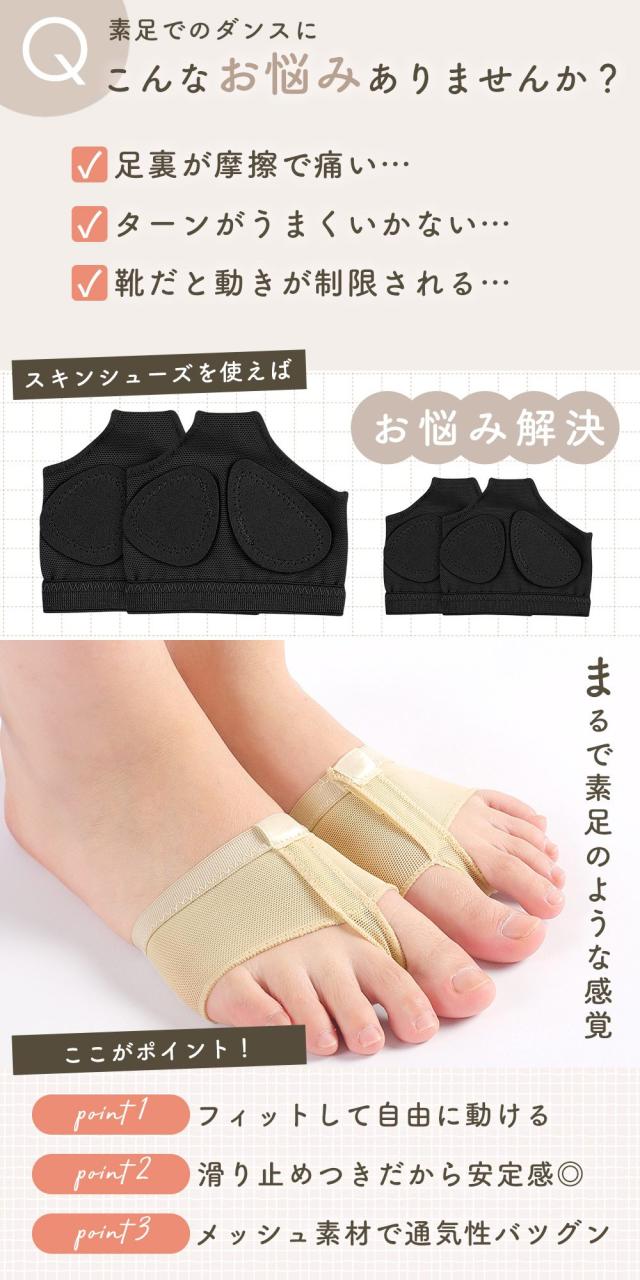 ダンス用/スキンシューズ/2足セット/バレエ/ソックス/靴下/大人/こども/フィット/レッスン/メッシュ/通気性/練習/足/保護/ジャズダンス/フラダンス/ベリーダンス/モダンバレエ/素足ケア/フットカバー/稽古/発表会/オーディション/まめ/たこ/靴擦れ対策/左右セット/家連/自宅/雑貨/ジュニア/蒸れない/保護パッド/サポーター/つま先カバー/女性用/レディース/