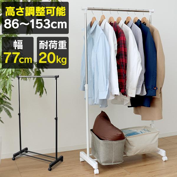 ハンガーラック 収納 スリムラック 伸縮 パイプハンガー シングル コートハンガー キャスター 省スペース 高さ調節 室内干し ブラック ホワイト パイプハンガーラック 物干し 衣替え 洋服掛け コート掛け コート掛け 衣類収納 一人暮らし 新生活 黄砂 花粉症 対策 送料無料