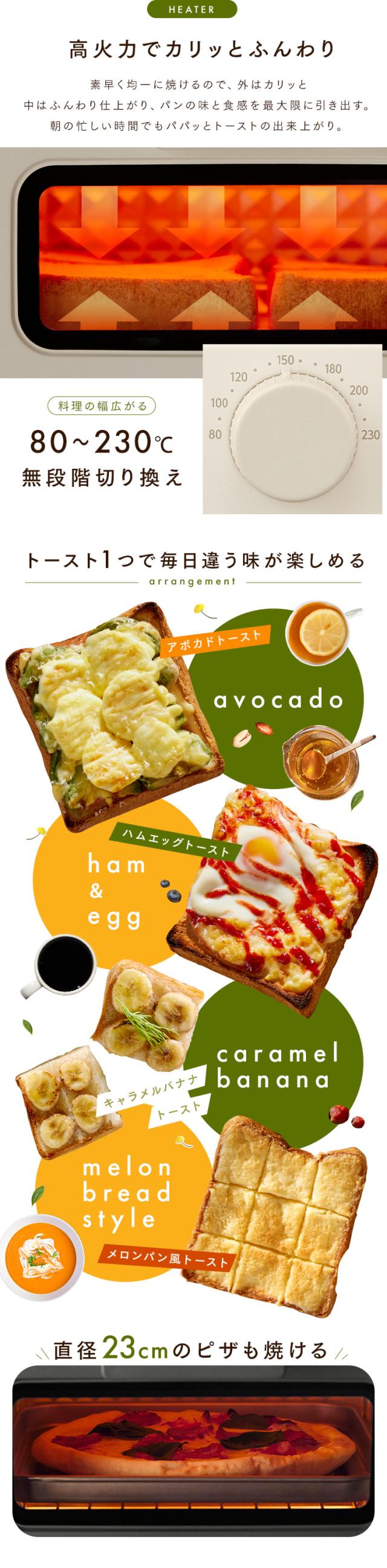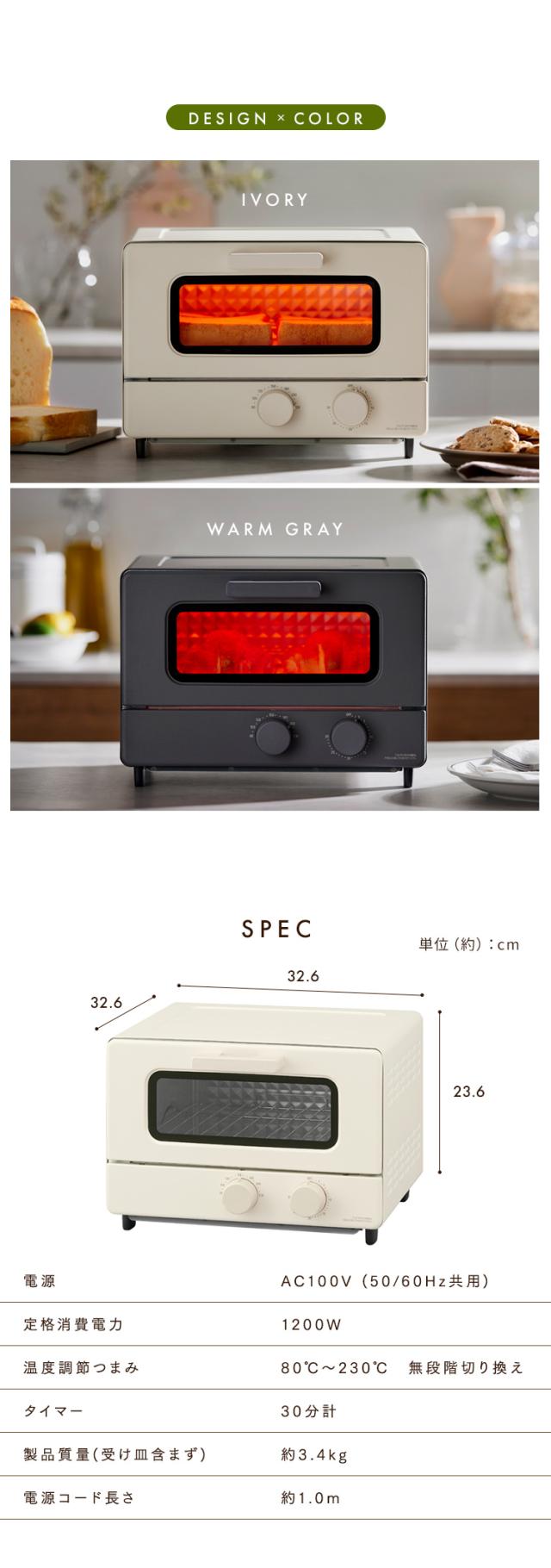 [検索用:トースター オーブントースター 2枚焼き 4枚焼き おしゃれ かわいい 角皿付き 80℃ 230℃ 無段階調整 タイマー付き 新生活 シンプル 4967576732925 4967576732932]