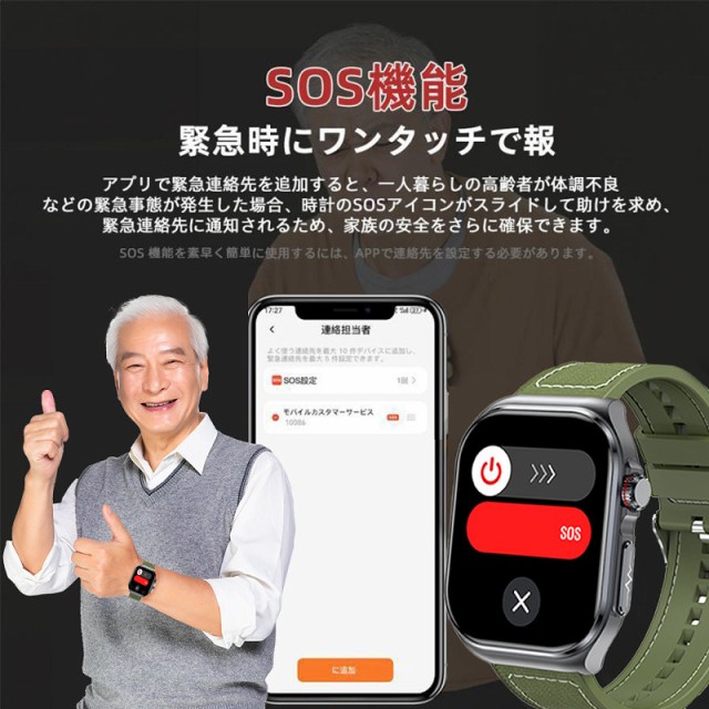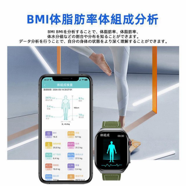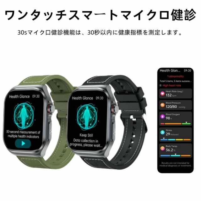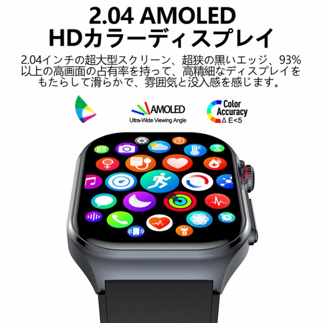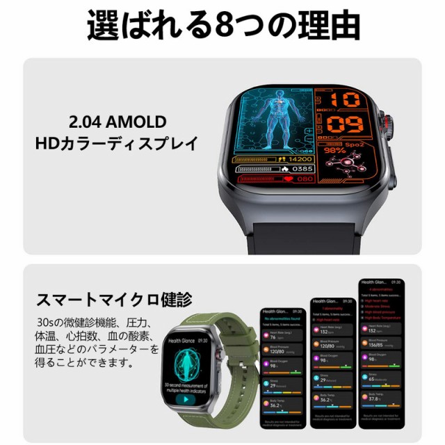 スマートウォッチ 日本製センサー SOS機能 2.04インチ大画面 ECG心電図 血糖値測定 24時間体温 血圧 心拍数 血中酸素 体組成 日本語説明書付き通話機能 歩数計 睡眠モニター メッセージ通知 音楽制御 530mAh IP68防水
