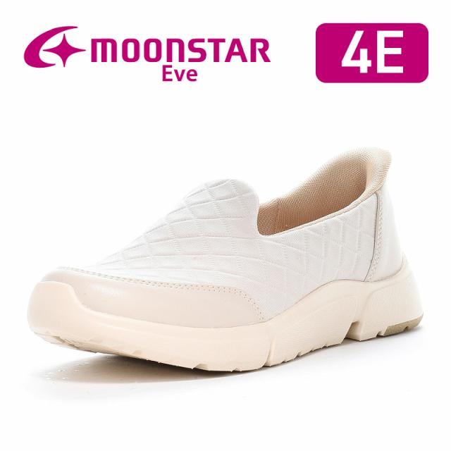 送料無料 ムーンスター イブ レディース スニーカー EVE 335 アイボリー らくにすぽっと履ける靴 イージー・ゴー 幅広4E ワイド設計 軽量 ガラス防滑 衝撃吸収 抗菌防臭 靴 シューズ