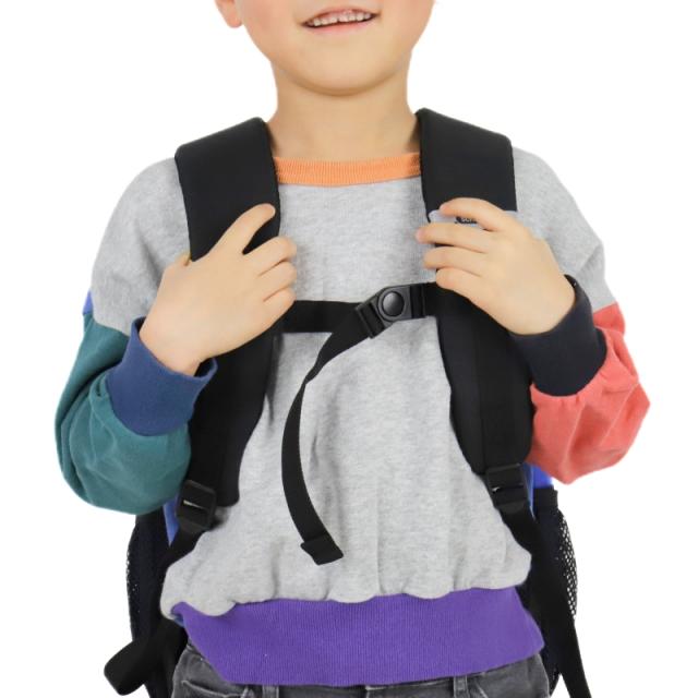 ズレ落ちを防ぐチェストベルト付き。