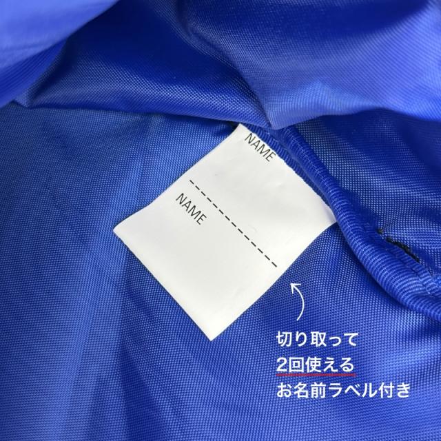切り取って2回使用できるネームタグ付き。