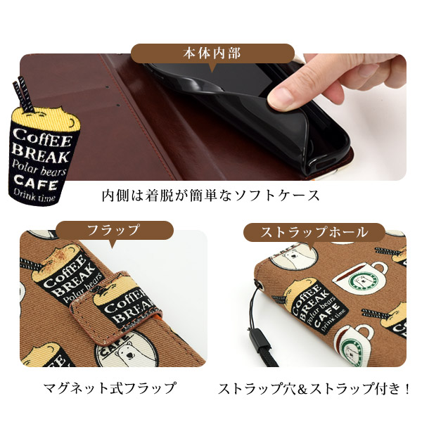 スマホケース 手帳型 AQUOSsense9 / AQUOS sense10 スマホ スタンド ポケット付き シロクマ&コーヒーデザイン 白熊 しろくま アクオスセンスナイン テン スマホカバー おしゃれ かわいい ホッキョクグマ SH-53E SHG14 A405SH SH-M29 SH-53F SHG15 A505SH SH-M33