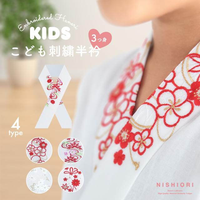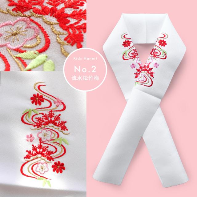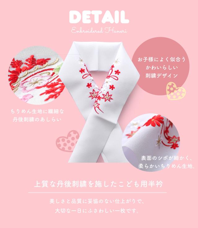 花ひめ 洗える お子さま用 ちりめん 刺繍 半衿 (全4柄) 日本製 キッズ 子供用 半襟 和柄 小紋柄 ポリエステル カジュアル 家庭洗濯 レトロ モダン 華やか 赤 白 紅白 毬 梅 紅葉 くす玉 薬玉 花 流水 フラワー かわいい 七五三 ひな祭り きもの 着物 こども お子様