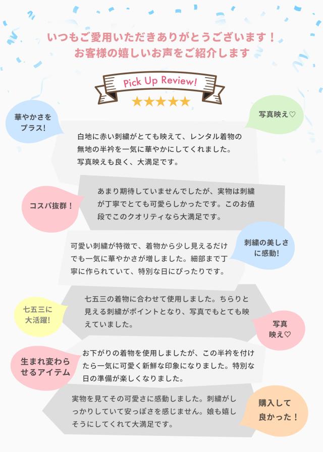 繊細な刺繍と明るい色使いで、お子様の着物姿を可愛らしく華やかに彩ります。