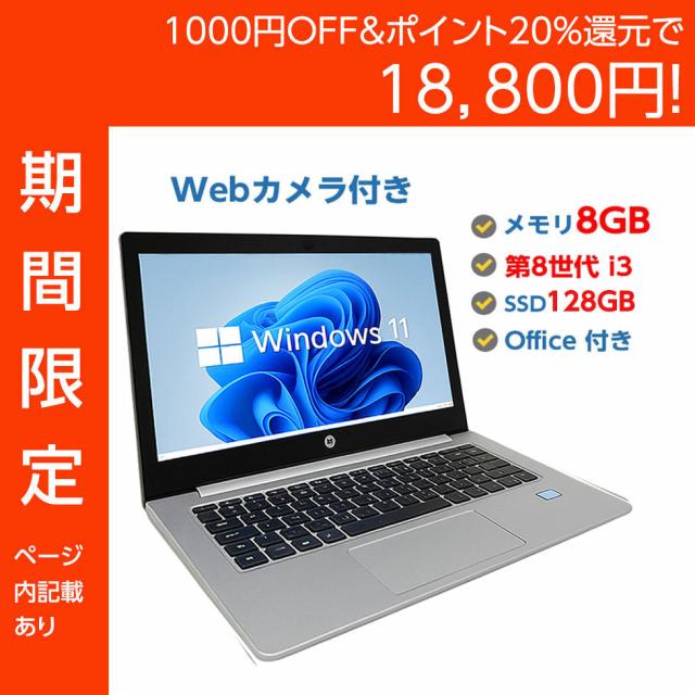 【期間限定18800円OFF+P20%で18,800円!】【正規品・Win11正式対応】Webカメラ付き ノートパソコン 中古 パソコン Windows11 高性能 第8世代 Core i3 メモリ 8GB SSD 128GB OFFICE付き Windows11/10 店長オススメ 高速SSD おまかせ 15.6型 無線LAN DVDドライブ