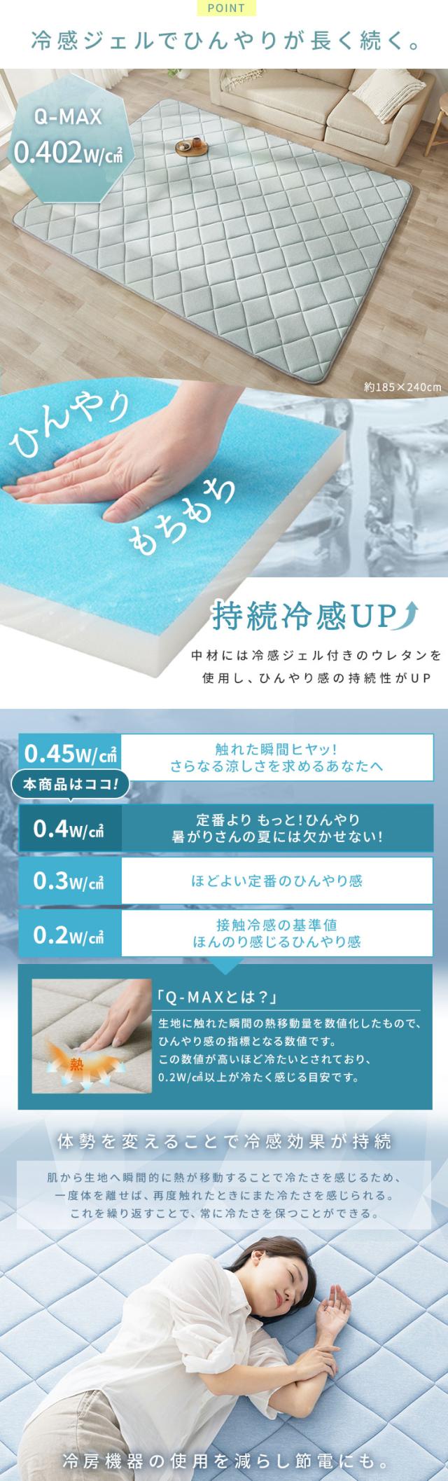 中材に冷感ジェル付きのウレタンを使用し、ひんやり感の持続性UP。