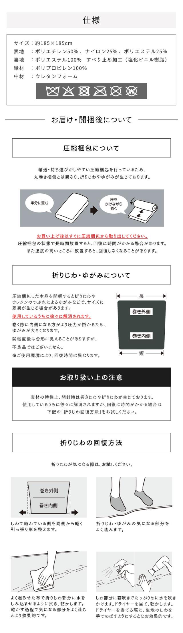 (検索用:ラグ 夏用 2畳 接触冷感 冷感ジェル ひんやり 冷感ラグ 厚手 3cm 防音 キルト カーペット ラグマット 185×185 ラクッションラグ 4967576769327 4967576769334 4967576769341)