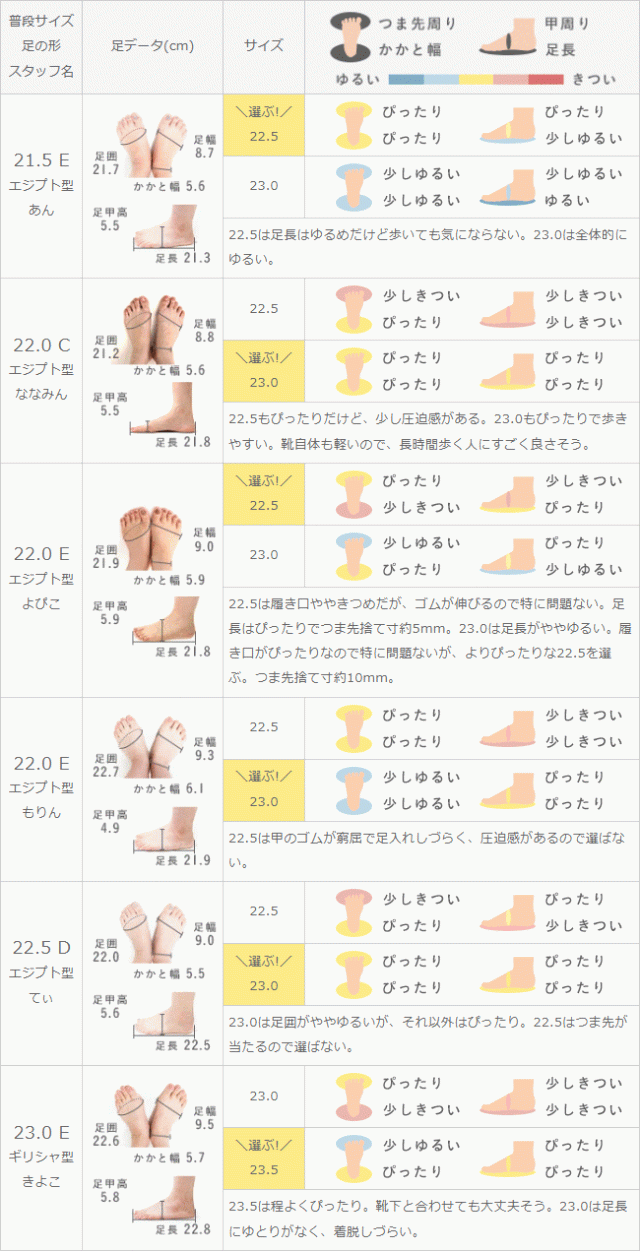 ※足の形には個人差があります。スタッフ試着感想は参考程度にお考え下さい。