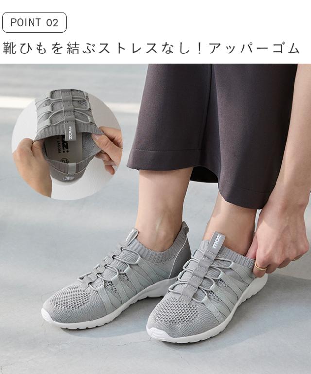 モズ moz スリッポン スニーカー フラットシューズ 履きやすい レディース ローヒール 軽量 痛くない 白 黒 送料無料