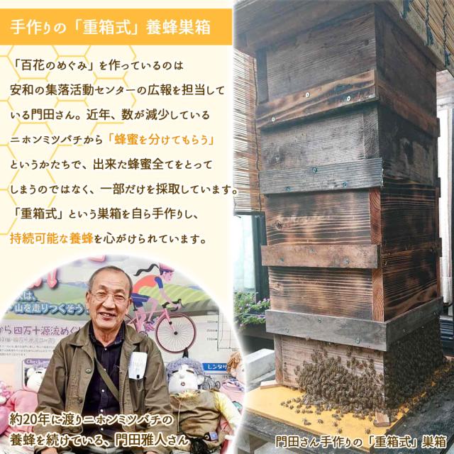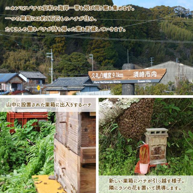 今回お勧めするのは、高知県でも特に温暖な気候である安和の海岸一帯でニホンミツバチを育てられている養蜂達人、門田さんがつくったニホンミツバチの純粋ハチミツです。