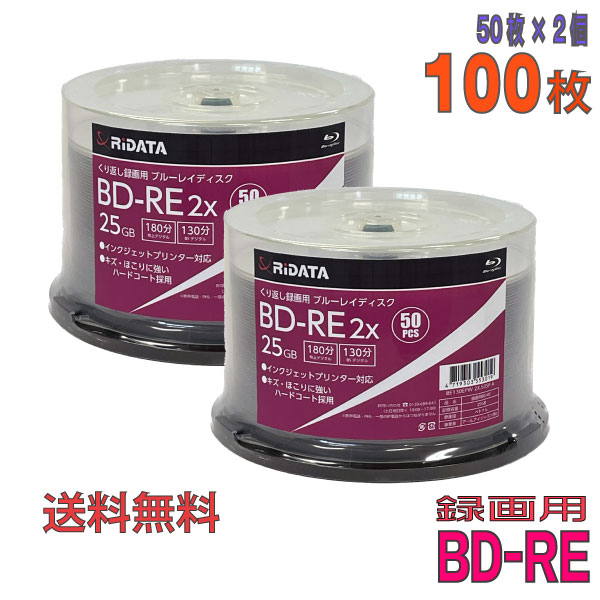 【ブルーレイディスク】 RIDATA(ライデータ) BD-RE データ&デジタルハイビジョン録画用 25GB 1-2倍速 ワイドホワイトレーベル 【100枚(50枚×2個)スピンドルケース】 (BE130EPW2X.50SP A 2個セット) 【送料込み※沖縄・離島を除く】 【KSW】