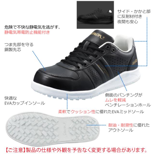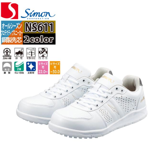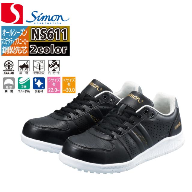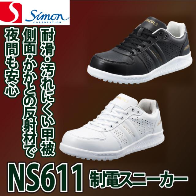 安全靴 シモン SIMON NS611 静電スニーカー 22-29 オールシーズン 反射 帯電防止 合皮 JSAA規格 A種