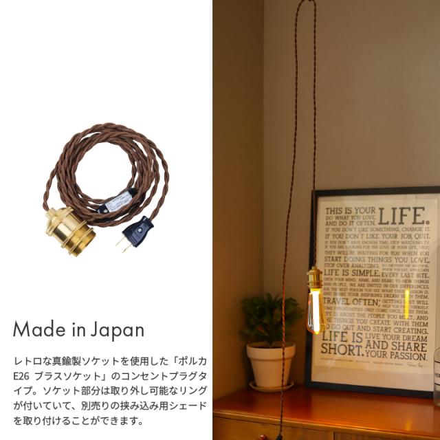 | 商品名 | ポルカ E26 ブラスソケット コンセントプラグ 300cm PORKA E26 BRASS SOCKET FOR OUTLET PLUG 300cm |