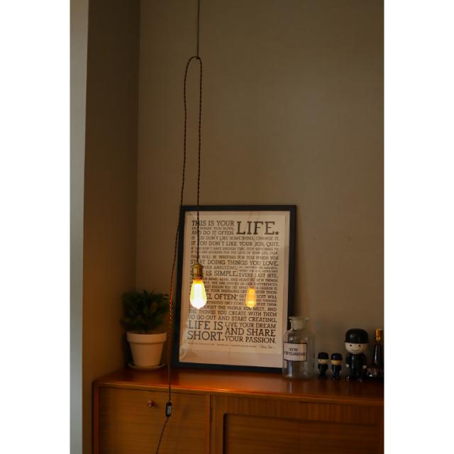 裸電球を楽しめるシンプルな真鍮製のペンダントライトは、おしゃれなエジソンバルブLED電球と相性抜群です。(口金E26サイズ)