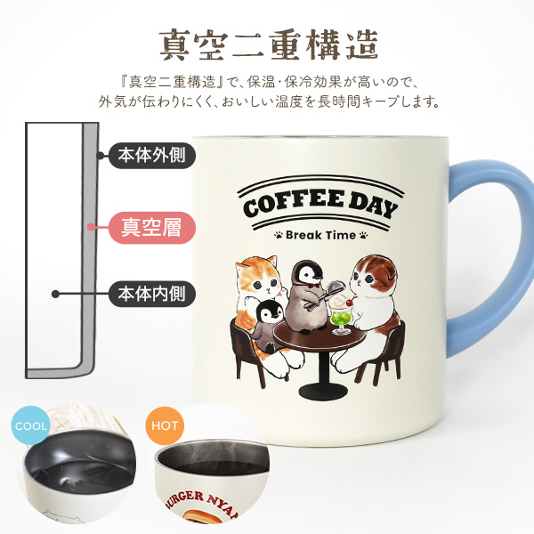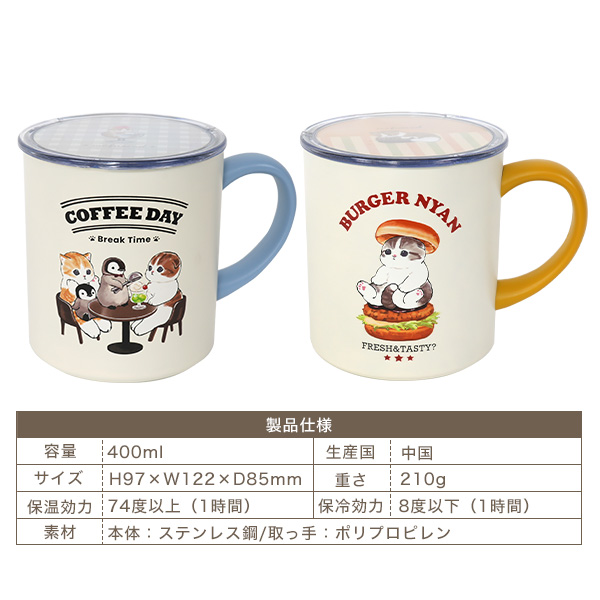 もふさんど 蓋付きマグカップ 400ml mofusand 真空二重構造で温かさキープ 埃が入らない 蓋つきマグ 保温 保冷 おしゃれ かわいい マグカップ 女性向け ギフト プレセント もふさんどグッズ 学生 OL 社会人 プチギフト プチプレ 誕生日 退職 ゴルフ大会 景品