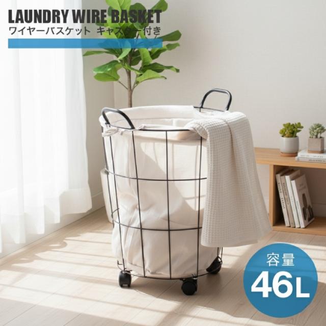【LDK掲載】 ランドリーバスケット 洗濯カゴ キャスター おしゃれ 大容量 46L ランドリーワゴン ワイヤーバスケット ランドリー 洗濯物入れ かご 洗濯かご 脱衣かご ランドリー収納 ランドリーボックス 収納 シンプル 一人暮らし 新生活 送料無料