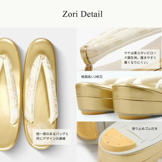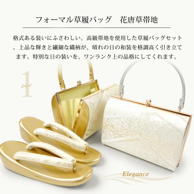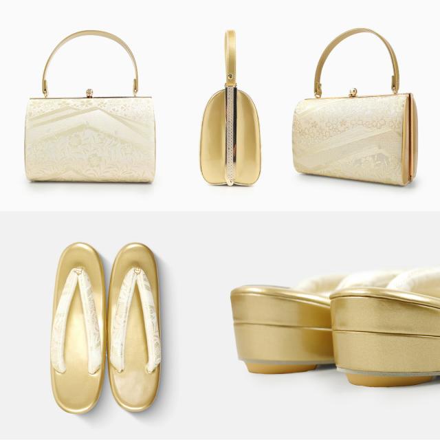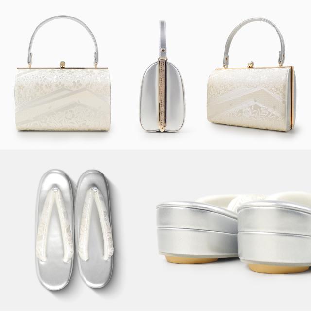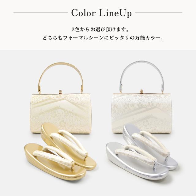繊細な桜文様の織柄と上品な光沢が魅力のフォーマル草履バッグセット。