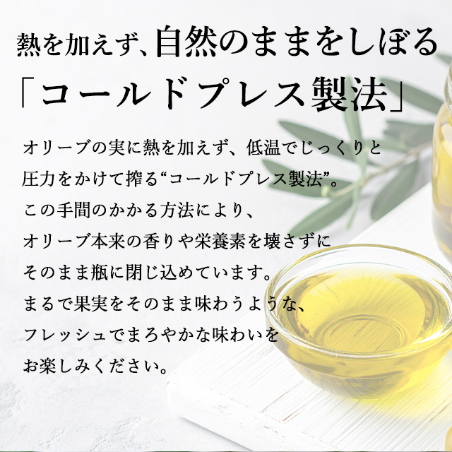トルコの地中海沿岸で育ったオリーブの実を100%使用し、コールドプレス製法で搾っています。