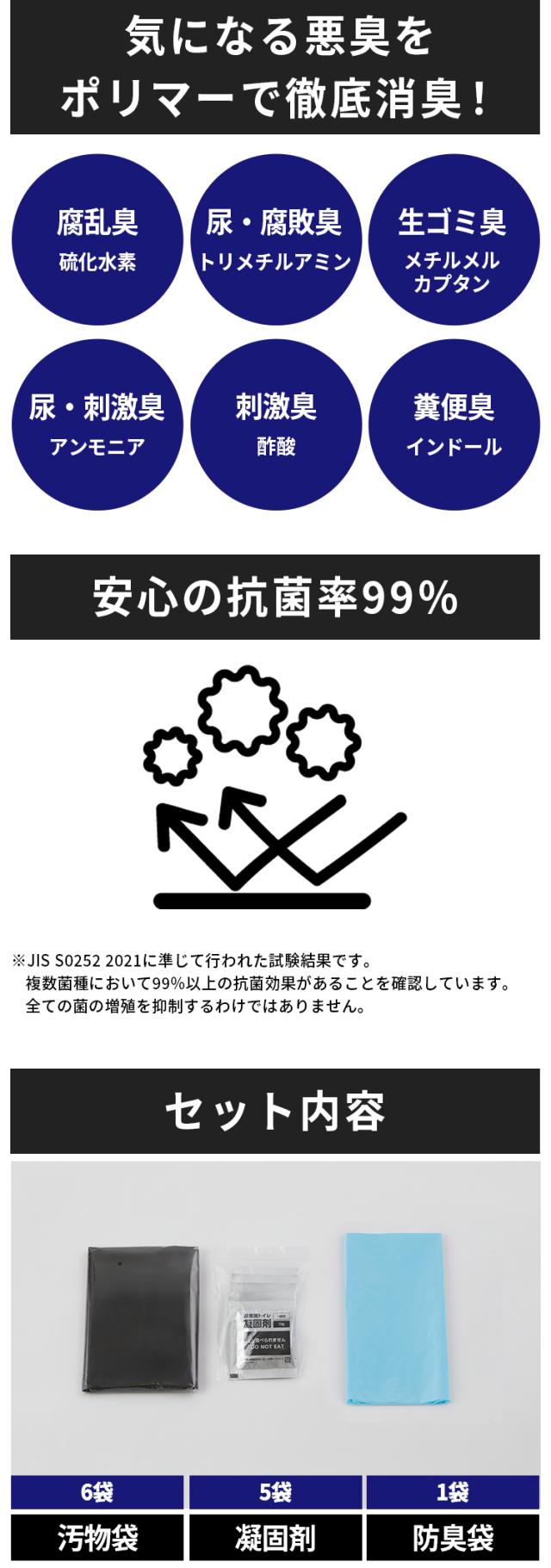 凝固剤×5、汚物袋×6、防臭袋×1(5回分)
