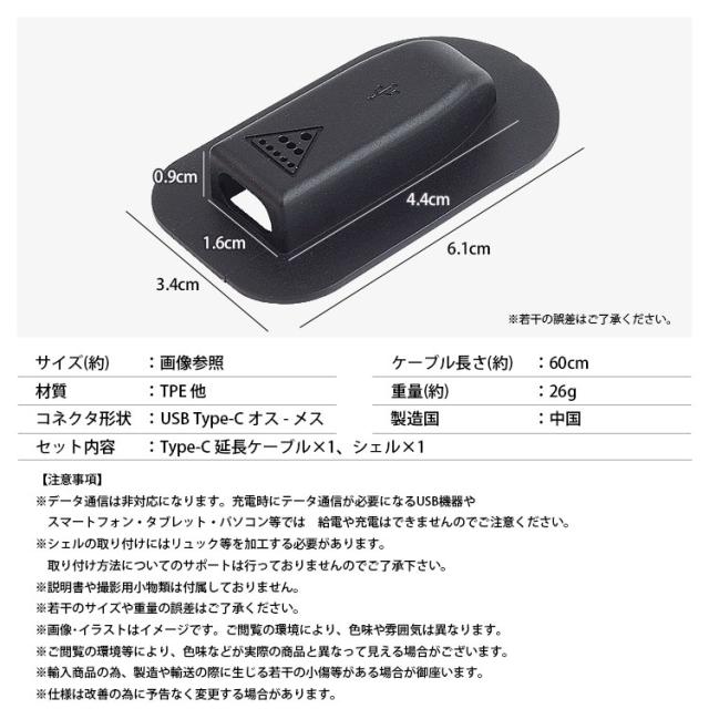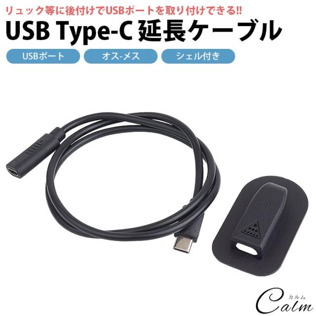 USB 延長ケーブル USBポート 後付け 外付け Type-C USB C タイプC シェル付き リュック カバン バックパック USB ケーブル 約60cm 充電 外部接続