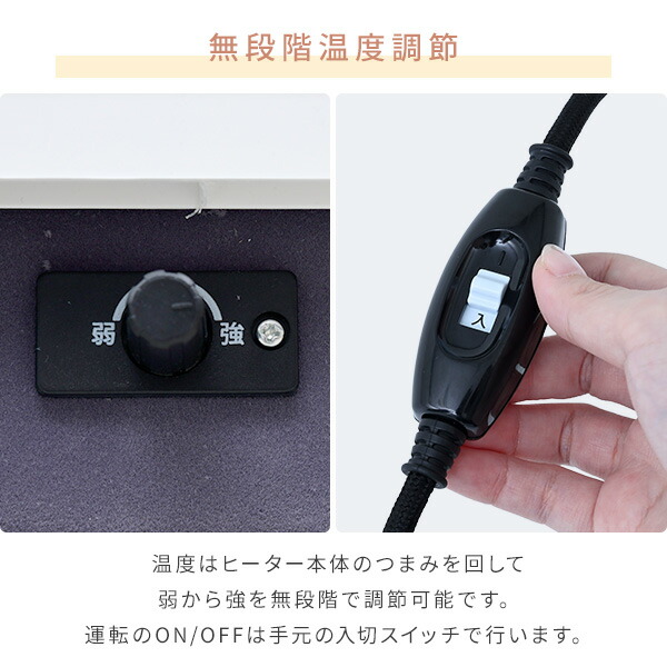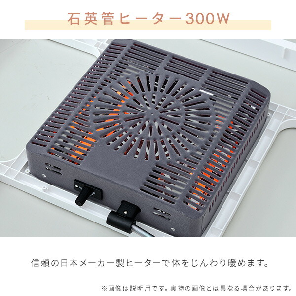 | 商品説明 | ●【こたつ本体】 ●電源:100V (50Hz/60Hz) ●ヒーター型番:NCH-302 ●電気代目安:(1時間あたり):(強)4.03円(約130Wh)、(弱)1.86円(約60Wh) ※電力料金目安単価1kWhあたり31円(税込)で算出 ●電源コード:中間スイッチ付き 丸打ちコードタイプ3m ●継脚はドライバーで調節可能 ●メーカー保証:1年 【こたつ布団】 ●さらふわな肌触りのフランネル生地を両面に使用 ●取っ手付き収納袋付きでオフシーズンもコンパクトに収納 ●リバーシブルで使用可能 ※圧縮状態でお届けします。開封後、およそ1日ほどで復元します。 ※お手入れは品質表示に従って行ってください。誤ったお手入れは、品質低下・破損の原因となります。 |