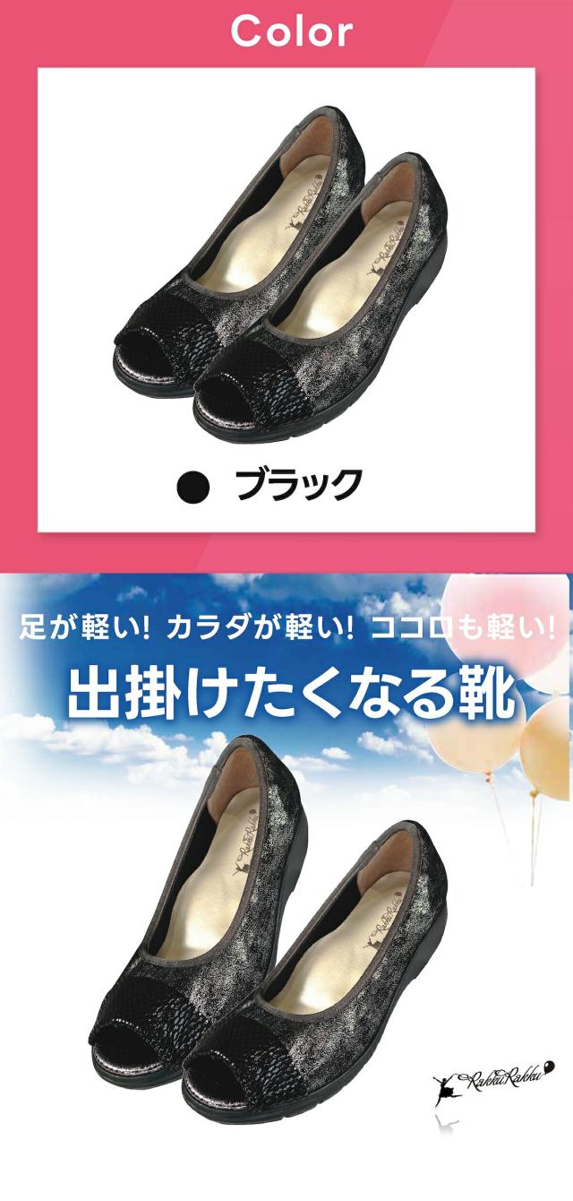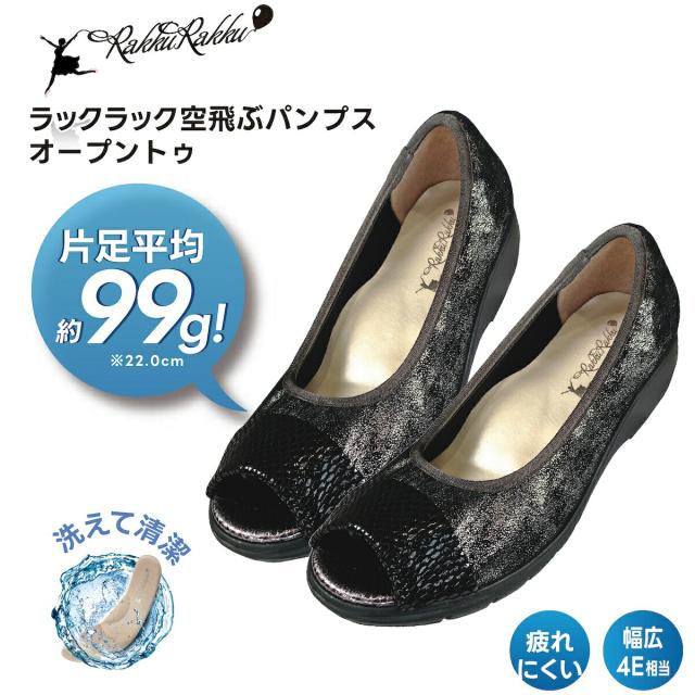 ラックラック空飛ぶパンプス オープントゥ 超軽量 ストレッチ素材 軽い靴 洗えるインソール やわらか素材 履きやすい 上品 春 夏 ブラック 黒 勅使河原郁恵 らっくらっく ラックラック 送料無料