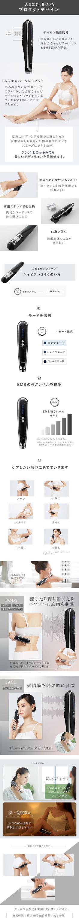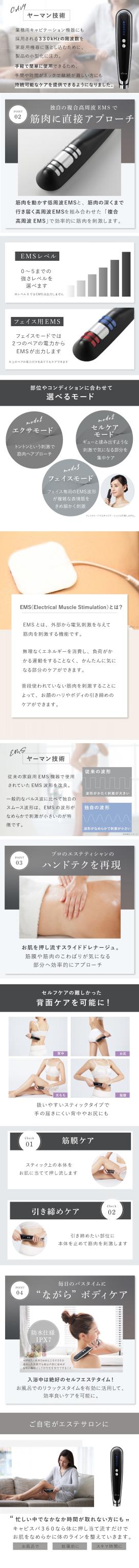 キャビスパ 360 キャビテーション ヤーマン YA-MAN キャビテーション ボディケア 美容器 ブラック ボディ フェイス 超音波 EMS 家庭用 防水 お風呂 エステ 筋膜 顔 肩 二の腕 お腹 背中 お尻 太もも HDS100