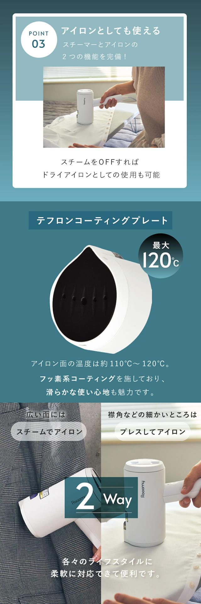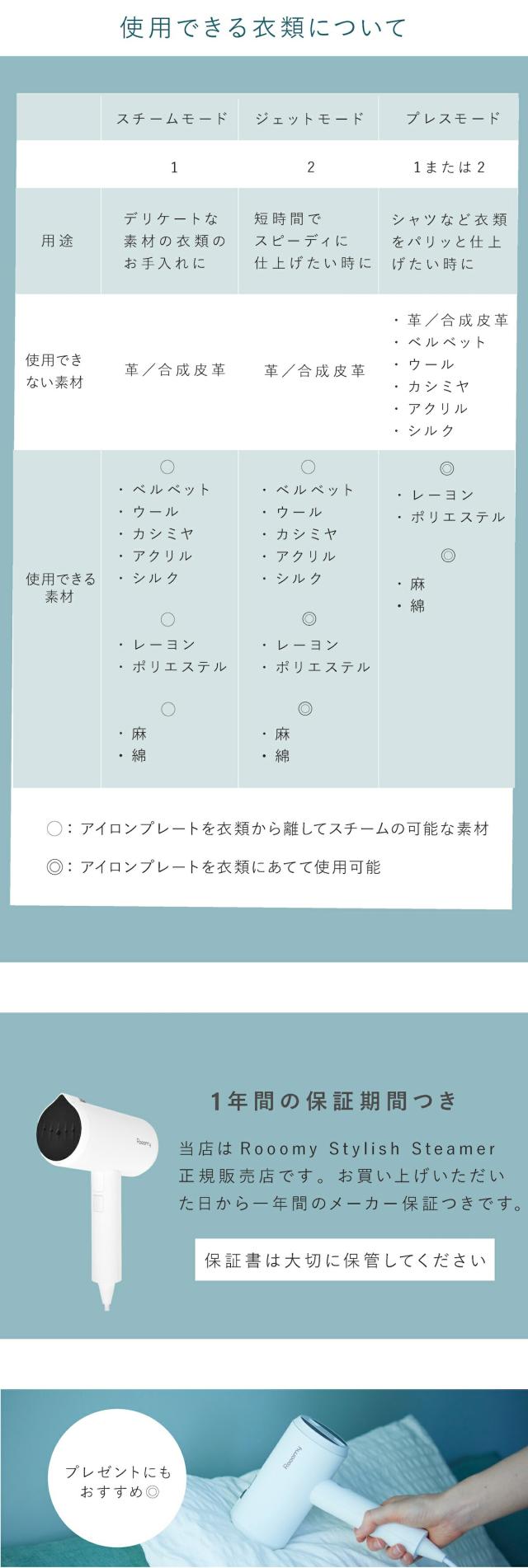 スチームアイロン ルーミー シワ伸ばし 衣類スチーマー Rooomy Stylish Steamer アイロン ハンディスチーマー 2WAY 除菌 消臭 花粉 ダニ 衣類 しわ取り アレルゲン除去 kalosbeauty カロス ルーミースタイリッシュスチーマー