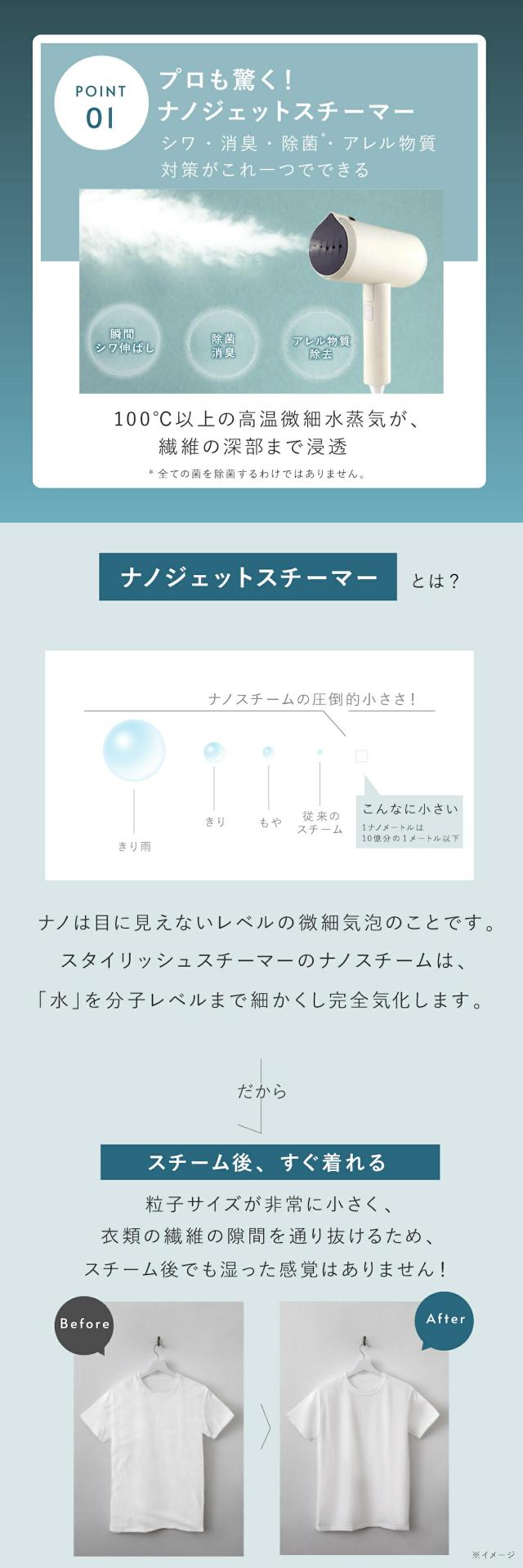 微細なナノスチームだからサッとシワを伸ばしてそのまま着れる!