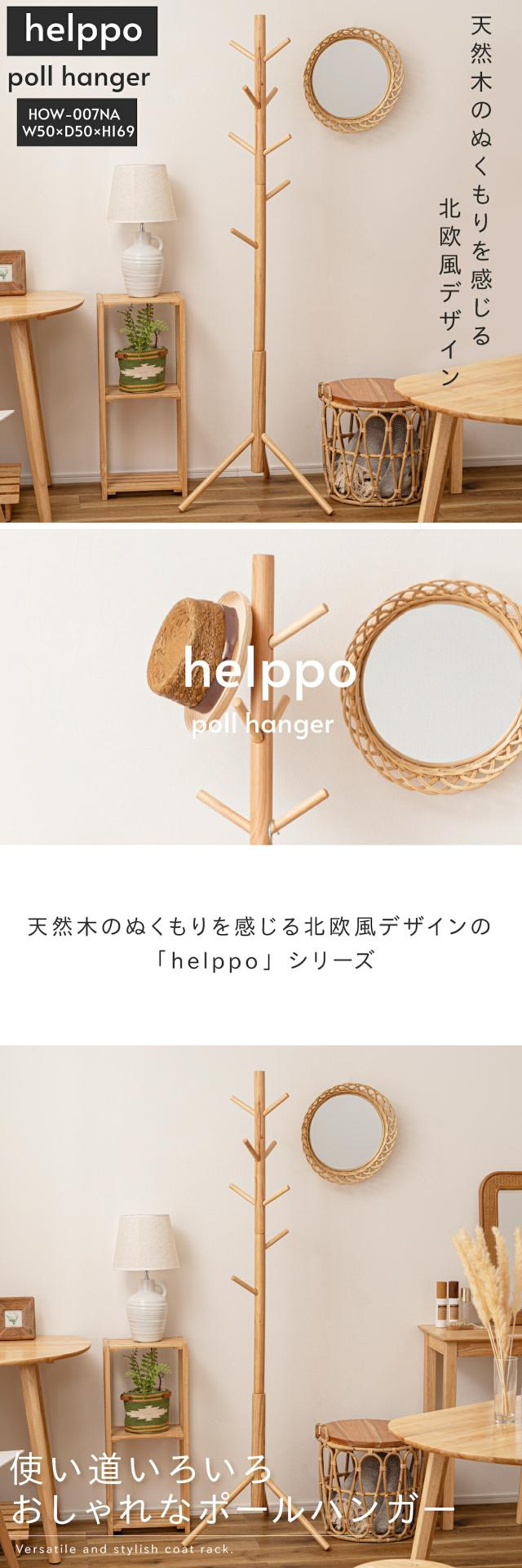 天然木のぬくもりを感じる北欧風デザインの「helppo」シリーズより、あると嬉しいポールハンガーが登場しました。シリーズで揃えて置けば、お部屋に統一感が生まれます。