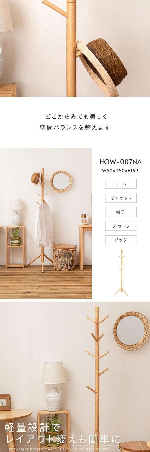 ポールハンガー ハンガー 収納 コートハンガー 帽子 天然木 シンプル おしゃれ 北欧 韓国インテリア ナチュラル 木製ハンガー ポールハンガー コンパクト スリム 東谷 あずまや HOW-007NA 送料無料