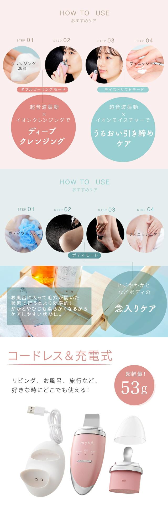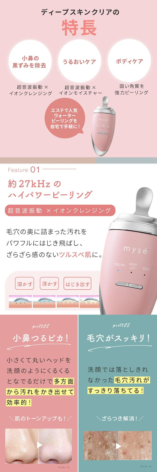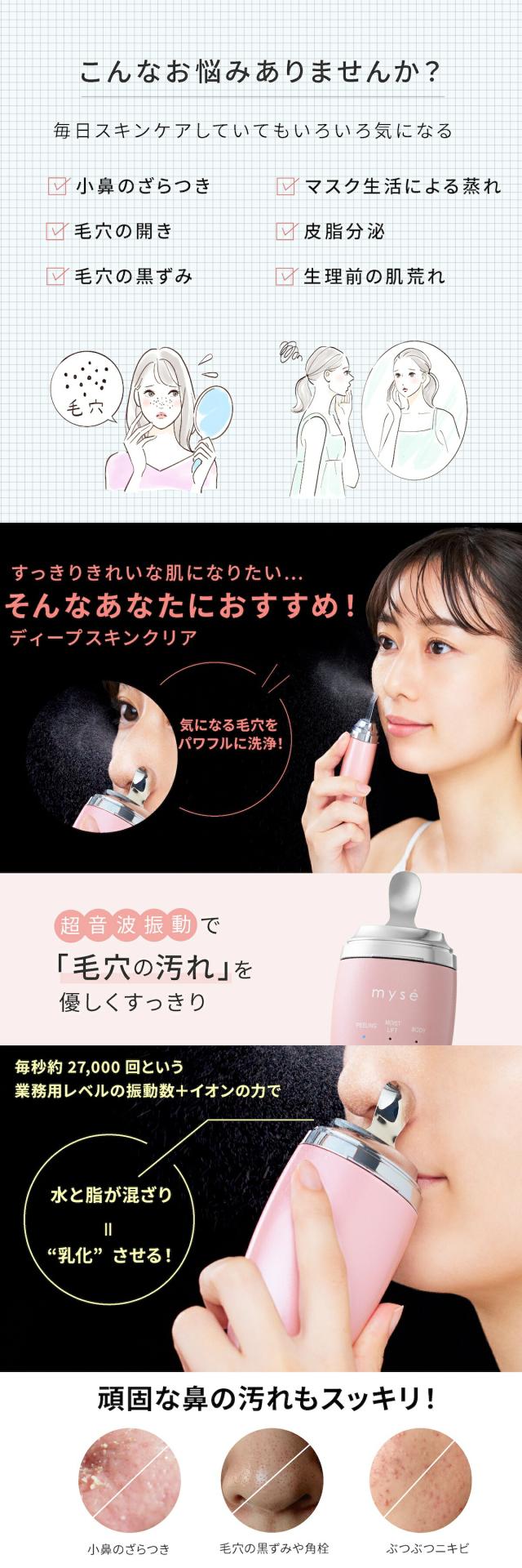 ミーゼ ディープスキンクリア MS43P ヤーマン YA-MAN ピンク フェイスケア スキンケア ウォーターピーリング イオン導出 イオン導入 防水 コードレス お風呂 毛穴 角質 角栓 小鼻 ニキビ 肌荒れ プレゼント ギフト 女性 送料無料