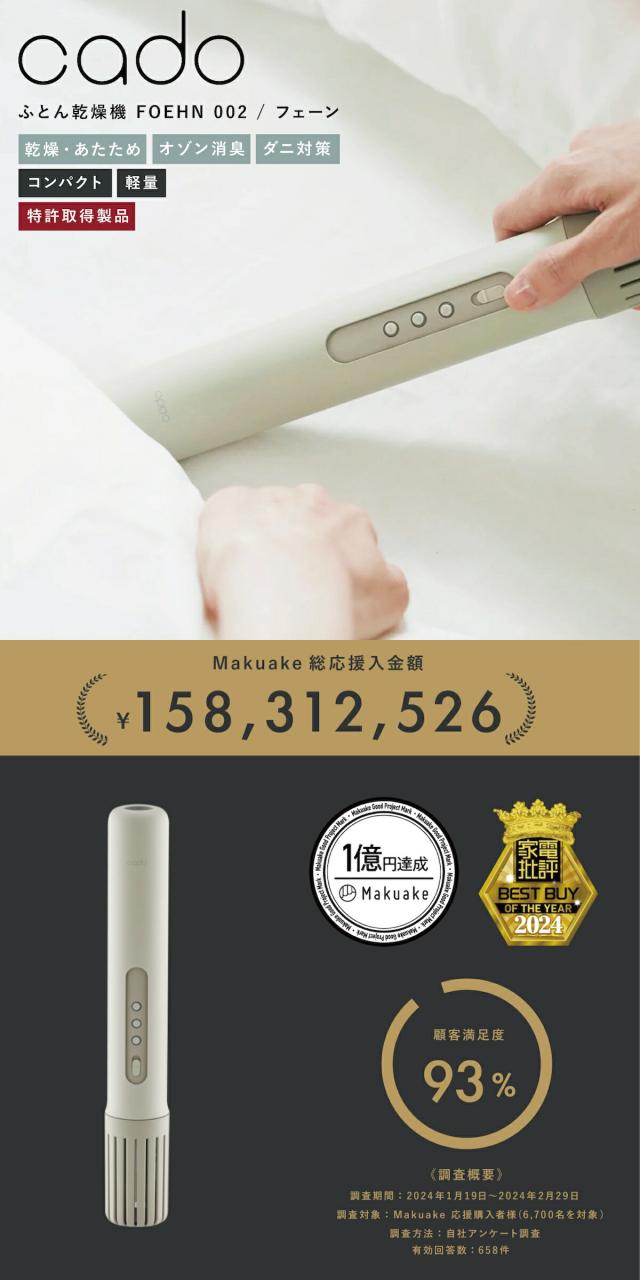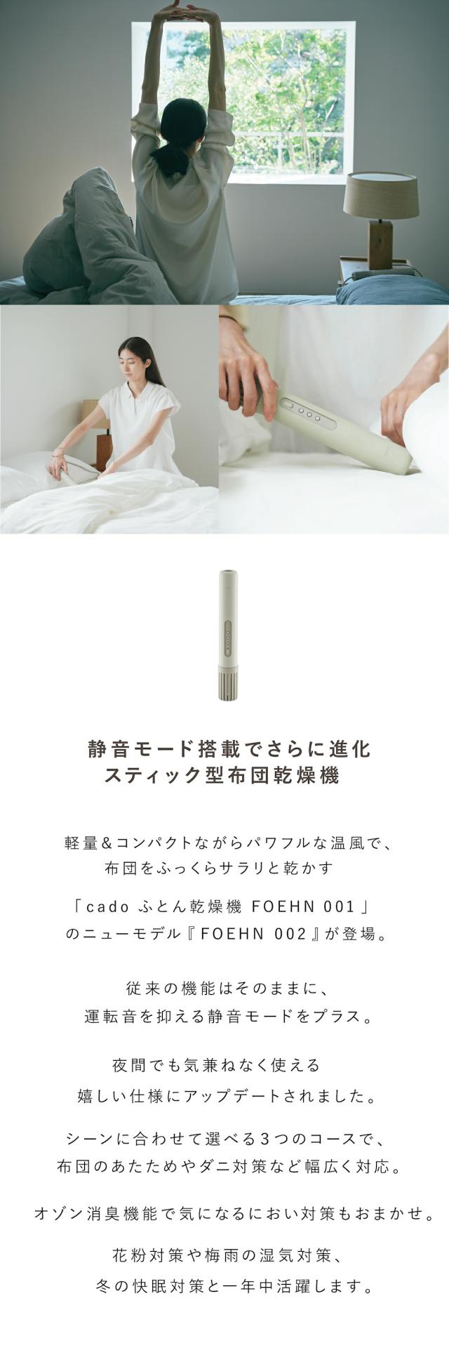 これまでの布団乾燥機とは一線を画する超小型サイズを実現した「cado 布団乾燥機」に静音モードやアタッチメントが追加された新型「FOEHN002」が登場。