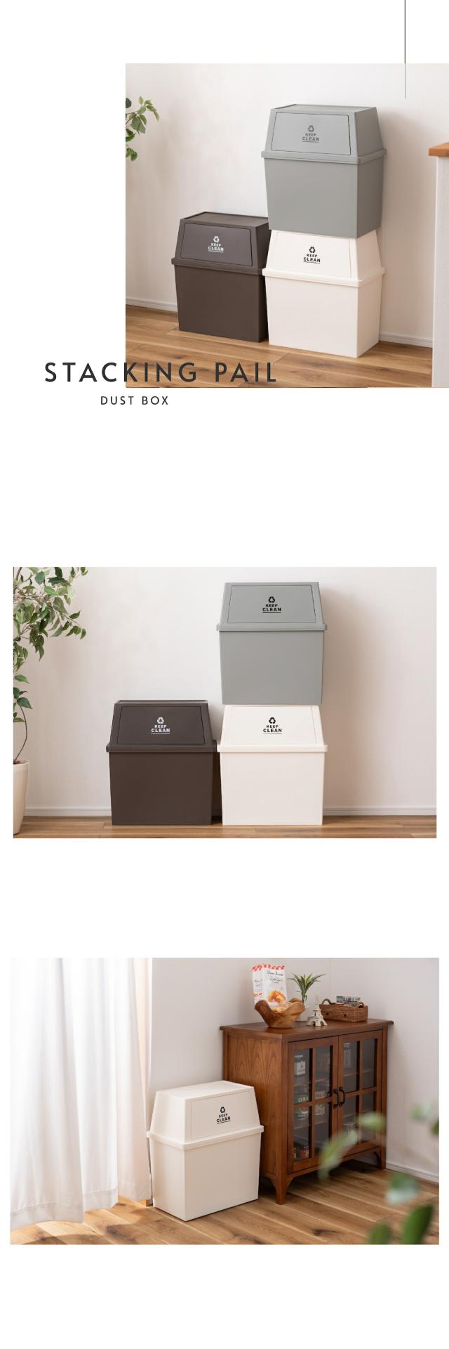 ごみ箱の上部と下部の凹凸を合わせて積み重ねるだけで簡単にスタッキングできる便利なゴミ箱。複数台を積み重ねてごみの分別をするのもおすすめです。
