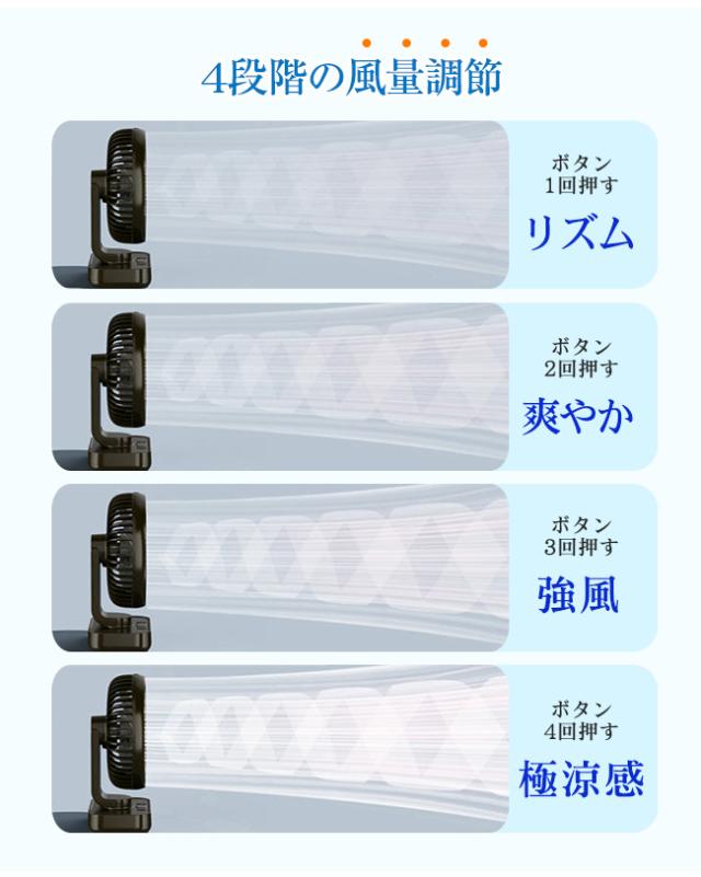 4段階の風量調節が可能で、お好みに合わせた涼しさを提供。