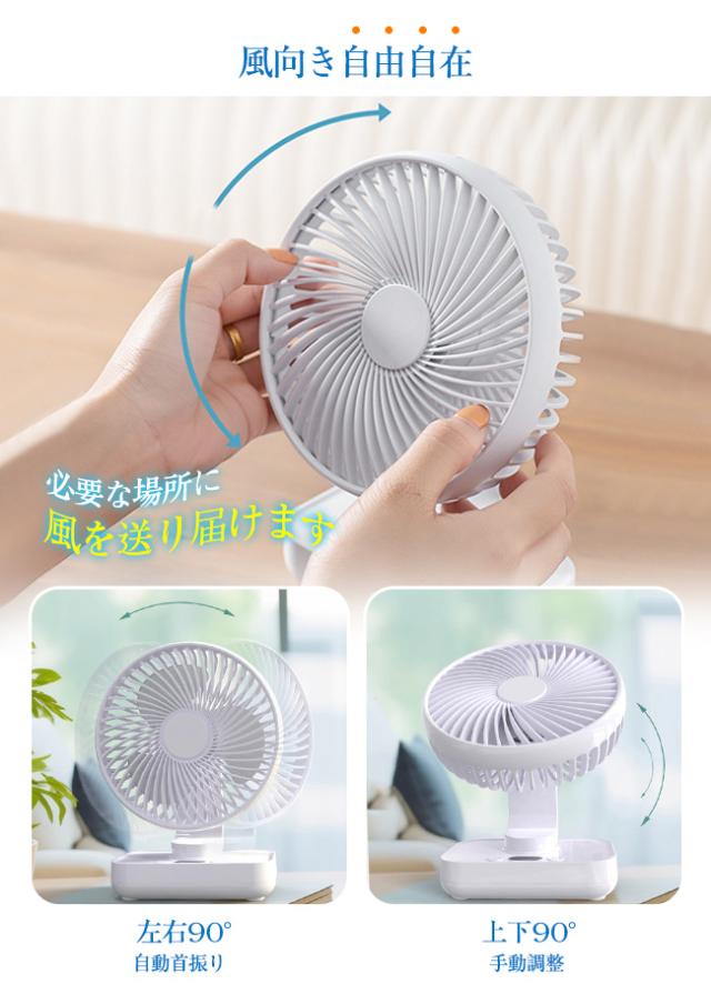 【在庫一掃】 卓上扇風機 首振り 4段階 usb充電 LED表示 大風量 静音 軽量 熱中症対策 猛暑対策 ファン 壁掛け リビング 洗面所 キャンプ