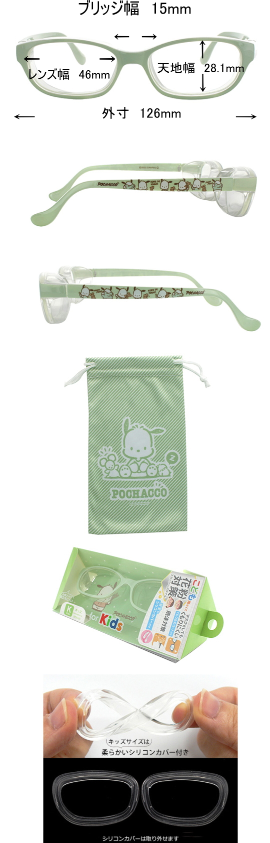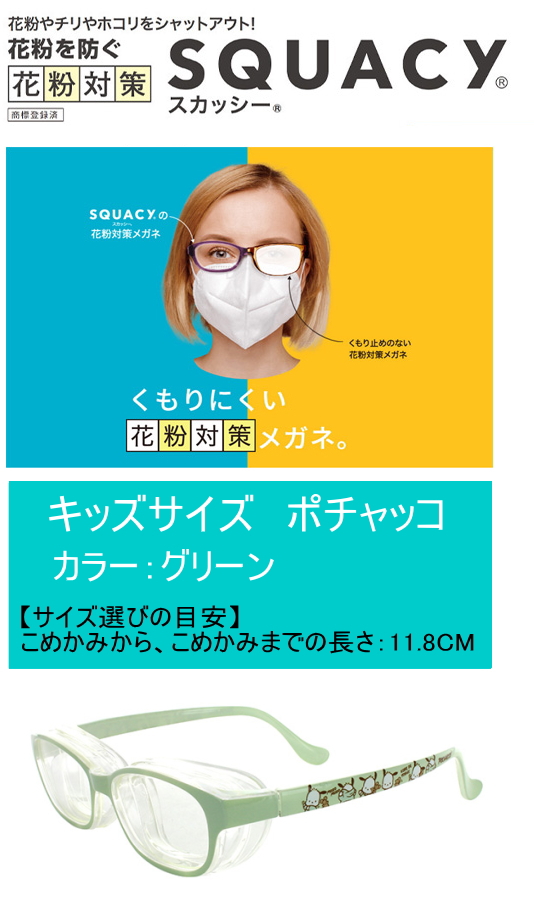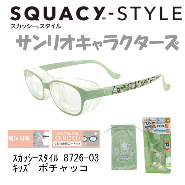 スカッシースタイル 8726-03 キッズ ポチャッコ サンリオ 送料無料 花粉メガネ くもり止め付き 花粉グラス 花粉対策メガネ 飛沫 SQUACY-STYLE