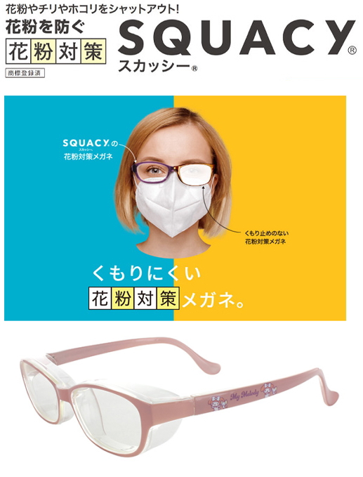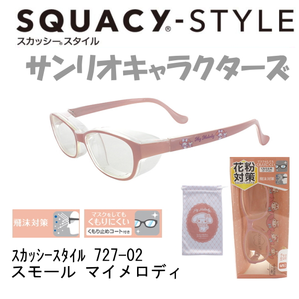 スカッシースタイル 8727-02 スモール マイメロディ サンリオ 送料無料 花粉メガネ くもり止め付き 花粉グラス 花粉対策メガネ 飛沫 SQUACY-STYLE