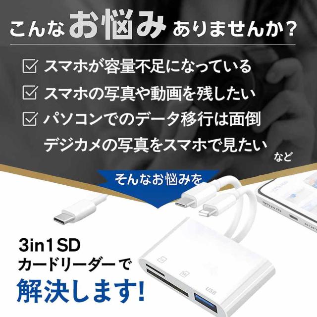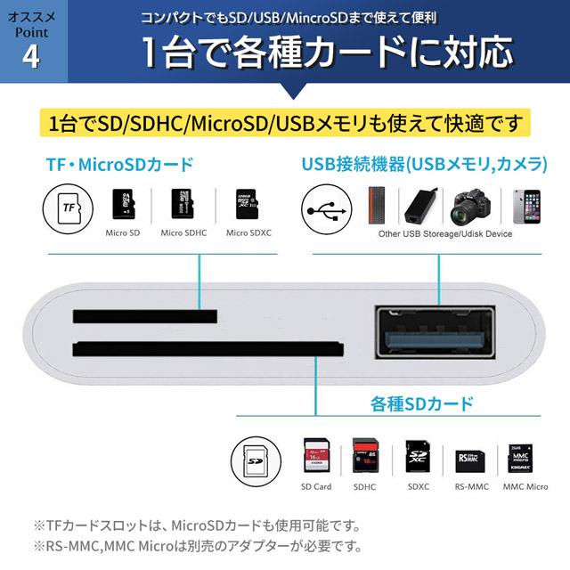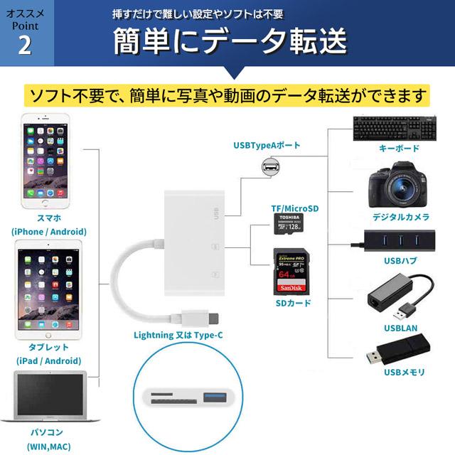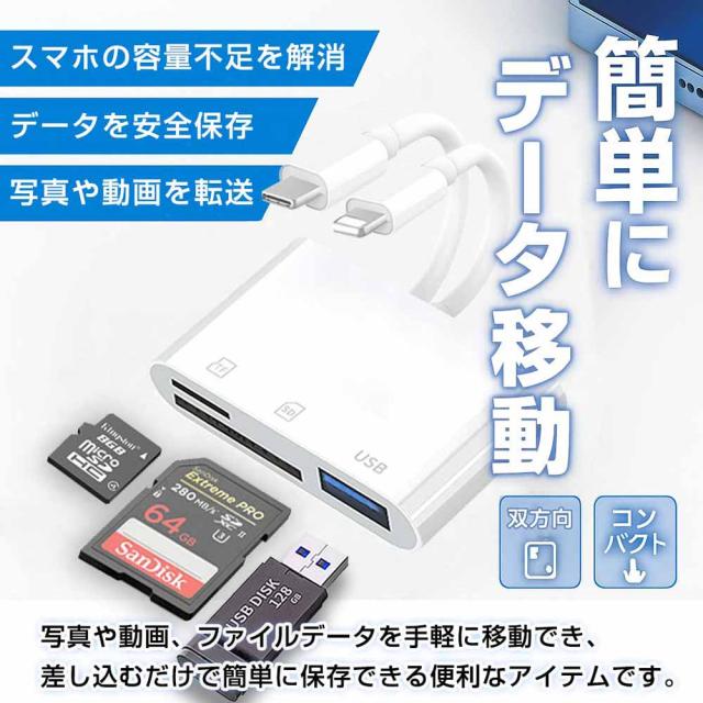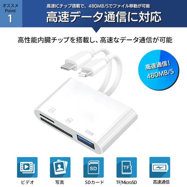 カードリーダー SD iPhone iPad USB メモリ リーダー Android データ 転送 写真 動画 Office ファイル 対応 カメラ アダプタ