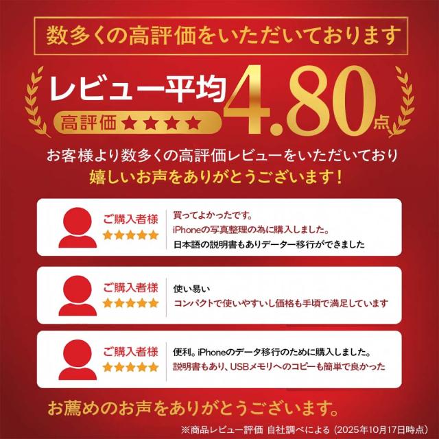 - iPhoneの写真整理の為に購入しました 日本語の説明書もあり不器用な私でもデーター移行ができました