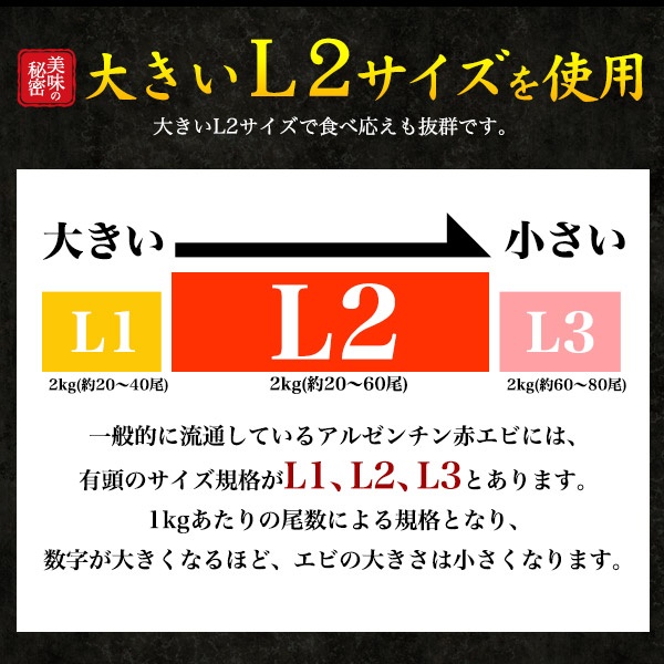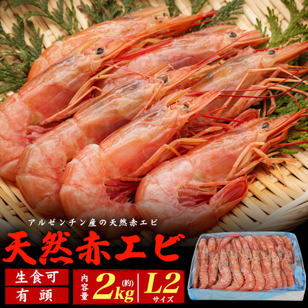 天然赤エビ 約2kg L2サイズ 有頭 生食可 お刺身 赤えび 海老 エビ 大きい おさしみ フライ アヒージョ 和食 洋食 冷凍エビ 有頭海老 有頭えび お取り寄せ 海鮮 大容量 輸入 酒の肴 送料無料 2025年 お歳暮 クール便