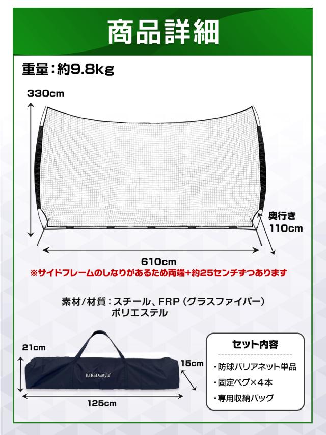 防球ネット バックネット 大型 6.1×3.3M 特大 防球バリアネット 自立 野球 バスケ ソフトボール サッカー テニス 練習用 駐車場 公園 簡単設置 折りたたみ 持ち運びOK 無限拡張 屋外 室内兼用 庭 収納袋付き